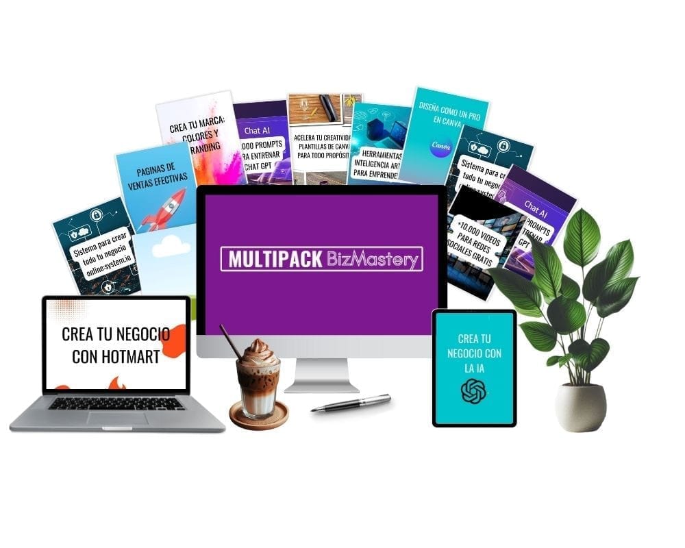 El Multipack es para cualquier persona que quiera comenzar su negocio en línea o mejorar el que ya tenga. Sabemos que nos lleva mucho tiempo intentar crear páginas de venta, ebooks, bonificaciones, embudos de ventas, vsl, diseños desde cero.